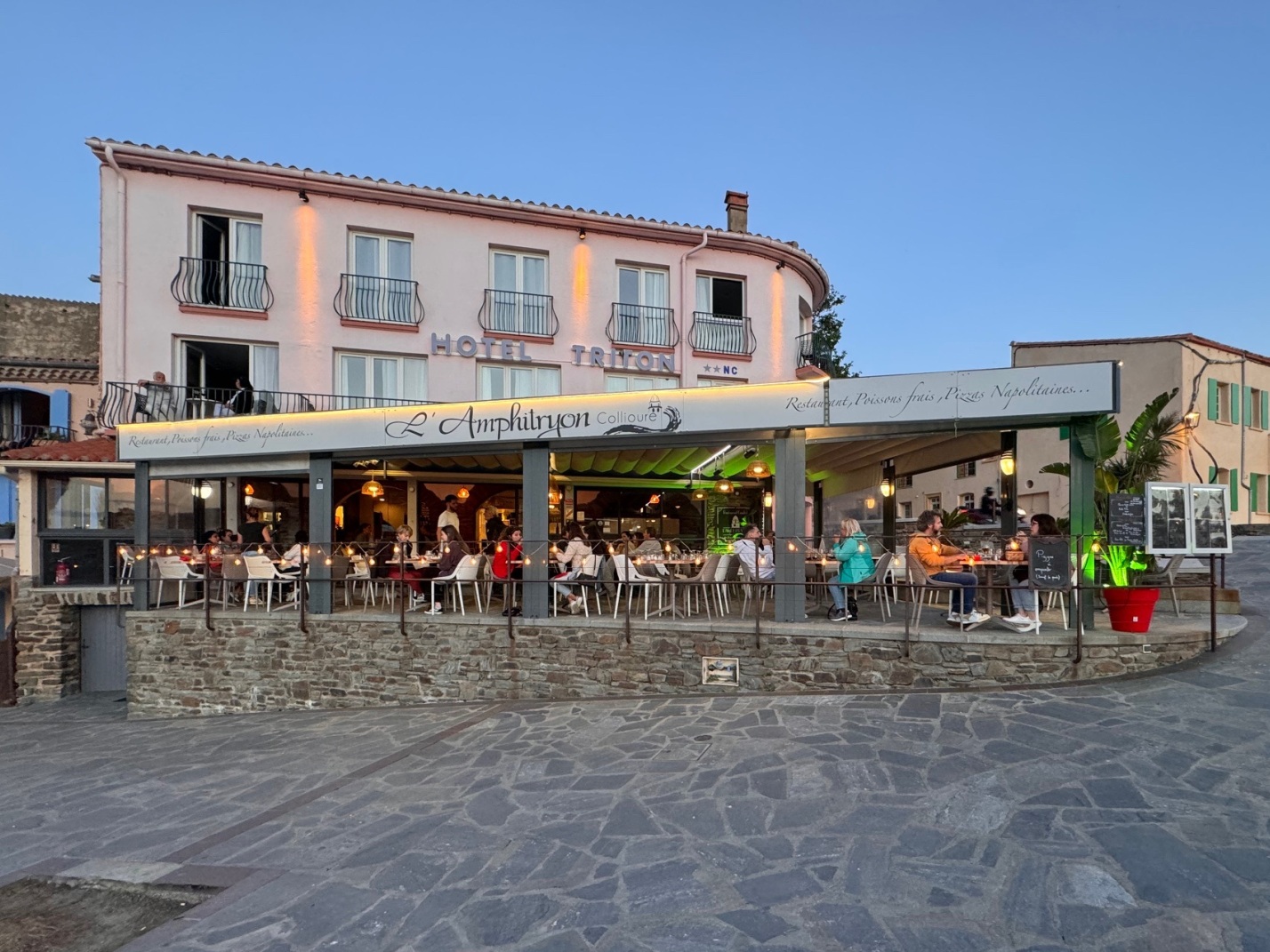 Le restaurant l'Amphitryon dispose d'une vue panoramique sur la plage et le port. Vous aurez le privilège de profiter d'une vue imprenable sur la Baie de Collioure et de vous détendre en admirant le paysage méditerranéen. C'est un restaurant familial où l'accueuil est chaleureux et l'équipe à votre écoute. Le restaurant vous propose une cuisine méditerranéenne à base de poissons, fruits de mer et pizzas gourmet Napolitaine. Les produits sont frais et la carte variée qui change selon les arrivages du marché. | ||